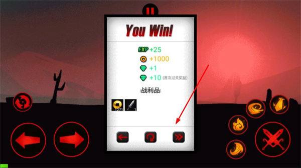 4、通关关卡后,在You Win界面查看获得的EXP、金币等奖励,点击界面中的继续,进入下一关。