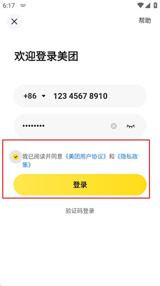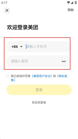 3、在登录页面的对应输入框内,依次填写手机号码和登录密码。