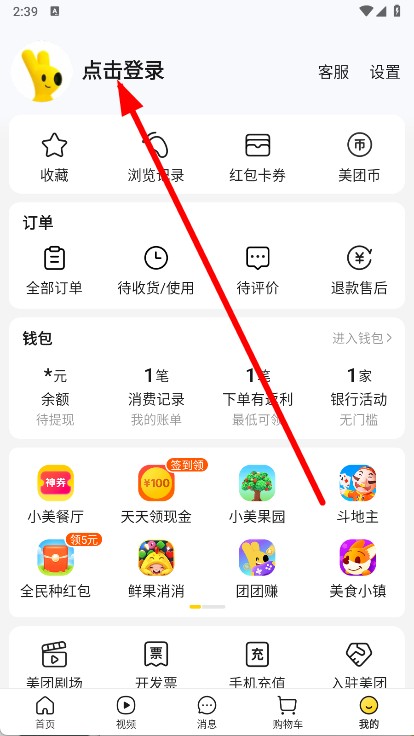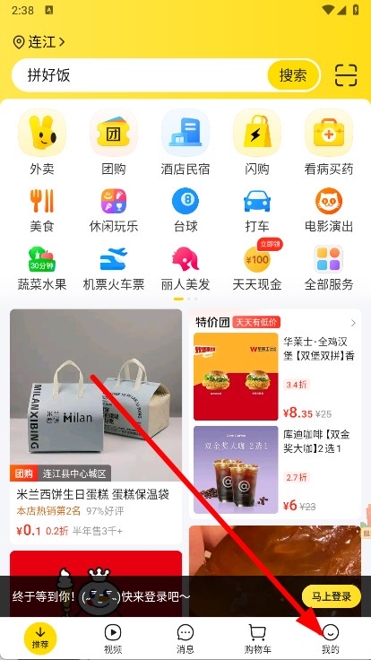 2、进入美团首页,点击底部我的。