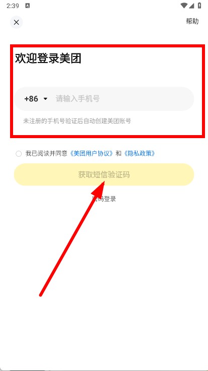 4、在登录页面,输入手机号,点击获取短信验证码,按提示完成登录或注册操作。