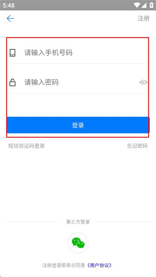 4、在登录界面输入框中,填写对应的手机号码,填写对应的密码,点击登录按钮。