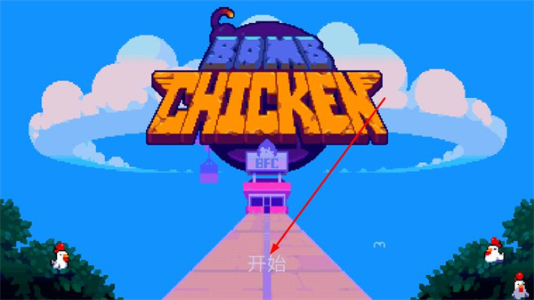 1、在游戏启动界面,点击开始,进入轰炸鸡的关卡场景。