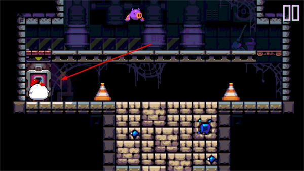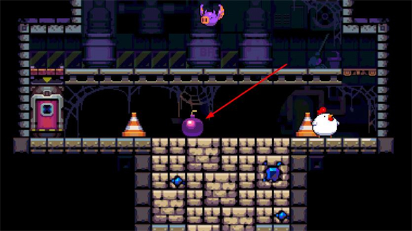 2、进入关卡后,控制小鸡角色移动到场景内的互动装置处,触发操作以获取炸弹道具。