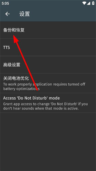 2、在设置页面中,点击备份和恢复,进入备份和恢复界面。