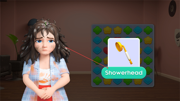 1、在关卡中选择Showerhead道具,准备通过消除图案获取该道具,推进关卡。