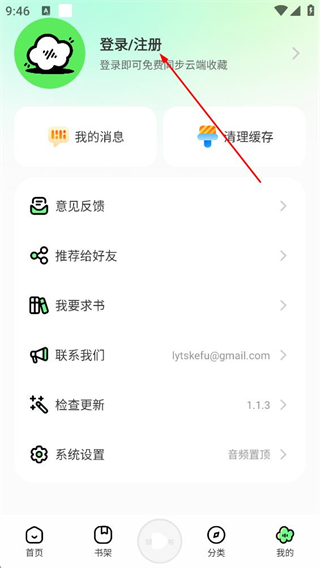 1、在轻云听书首页,点击底部的我的选项,进入个人页面。