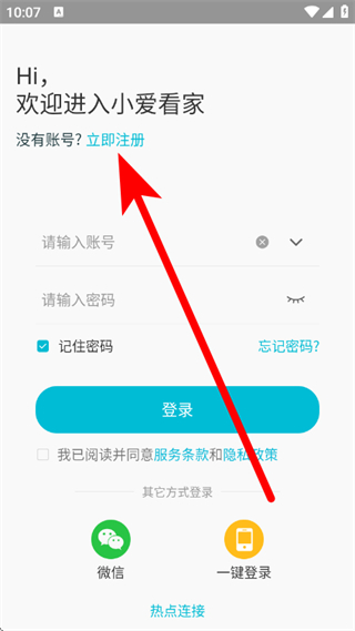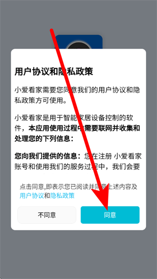 1、打开小爱看家,在弹窗中点击同意,进入登录页面。