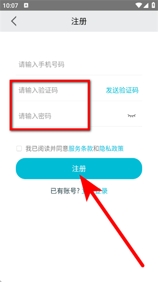 4、输入验证码,设置密码,勾选后,点击注册,完成账号注册。