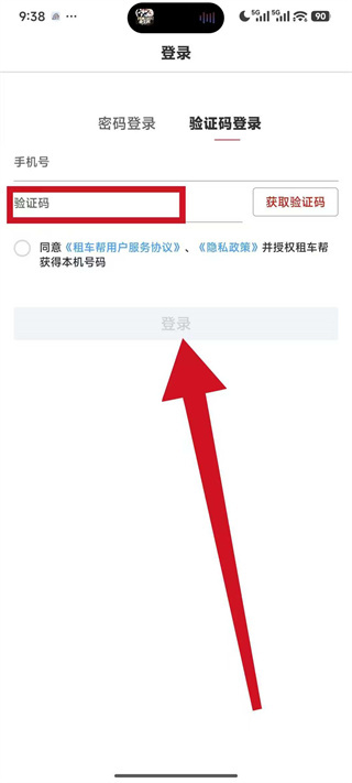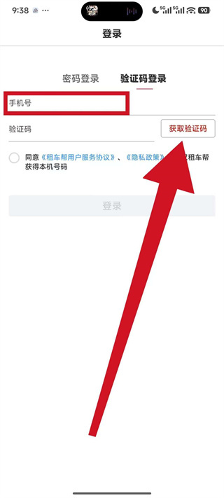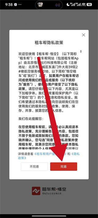 1、打开租车帮,在弹窗中点击同意,进入登录操作界面。